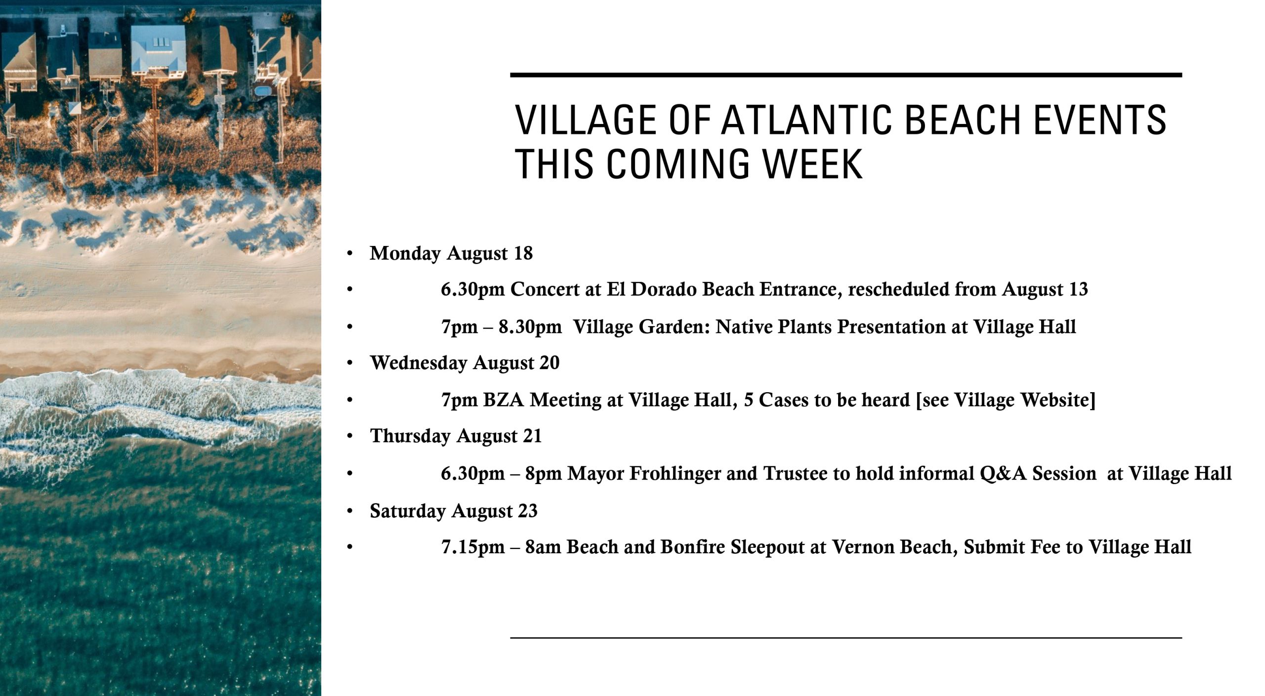 Monday September 29 – 7:30pm – Office Hours, Q&A, with Mayor and Trustee[s] Thursday October 9 – 7:30pm – Regular Monthly Meeting of the Board of Trustees [moved from Monday October 13 due to Columbus Day Holiday] Wednesday October 22 – 7pm – BZA Meeting